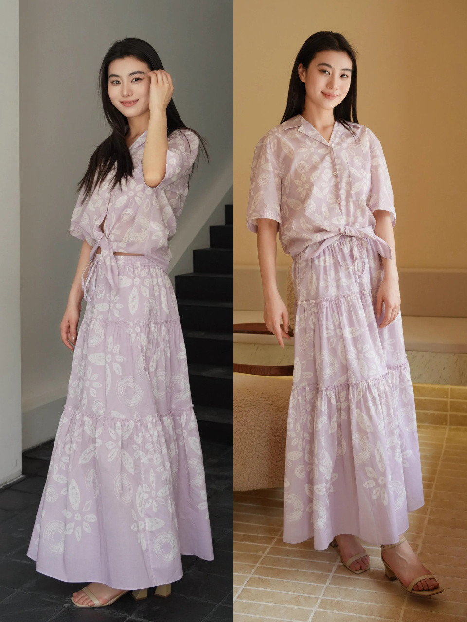 担心自己不会配色会出错,不妨直接选择上面这种紫色印花的衬衫裙装,配上一双粗跟凉鞋,低饱和色系穿在身上更容易 get 到时尚感,温柔又高级。